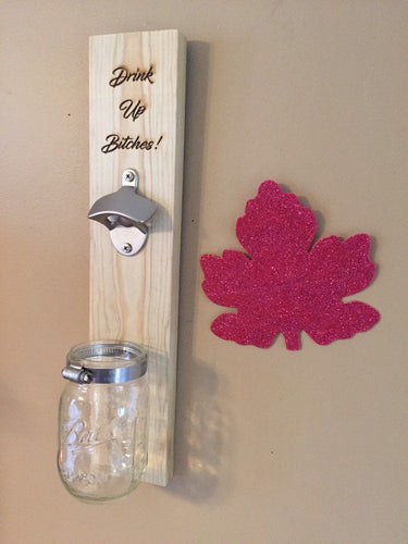 Hanging bottle opener. "Drink Up Bitches" custom opener.