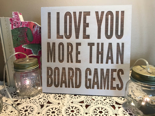 I Love You More Than Board Games quote custom home decor wall hanging, 8" x 8"
