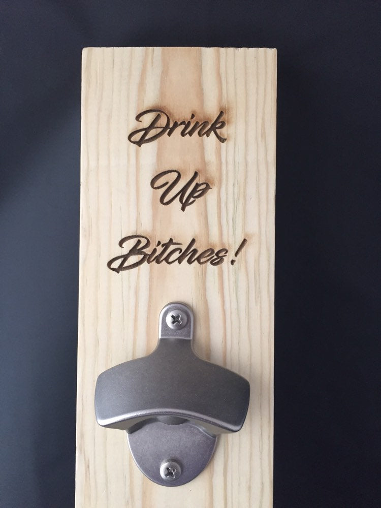Custom laser engraved hanging bottle opener. Can be personalized.
