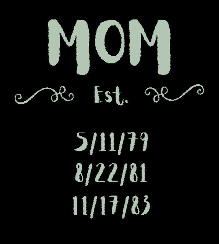 Laser etched 11oz stemless wine glass, Customize with birthdates of her children. Comes with 2 glasses.